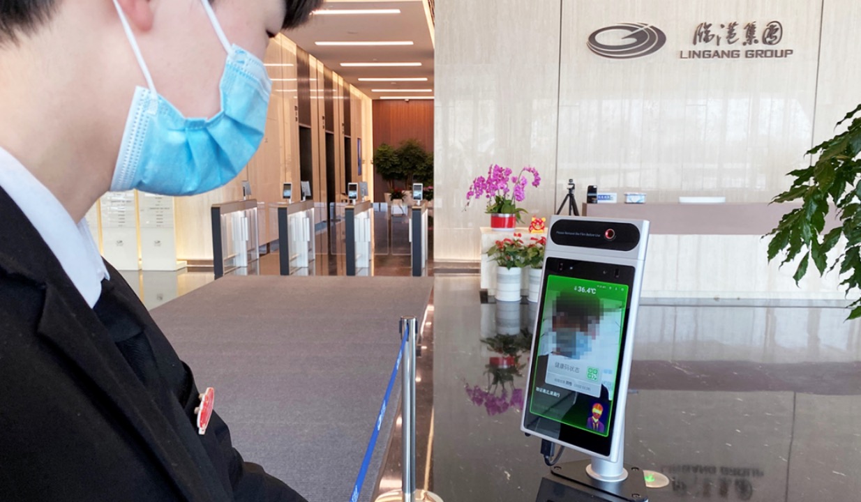 协作人员线下复工,商汤作业大楼内重要收支口均设立了商汤数字岗兵快捷通行体系,便利作业人员安全返岗。