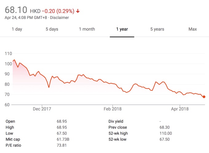 在此之前,作为引领本次科技股香港上市潮的前锋,自拍使用和智能手机厂商美图率先于 2016 年 12 月 15 日登陆港交所,但股价走势却不温不火。美图周二股价报收于 8.48 港元,略低于上市买卖首日 8.50 港元的收盘价。
