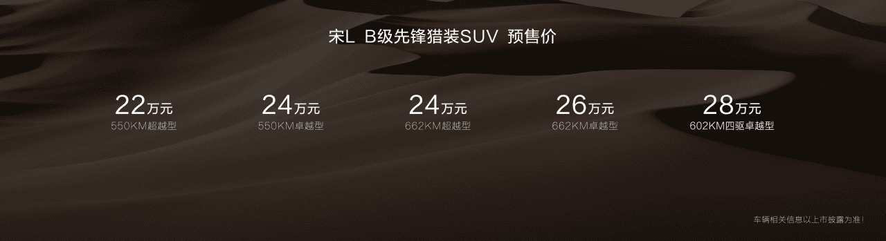 本年最值得等待的新车宋L正式敞开预售,发布了5个款型,包含4款后驱版别以及1款四驱版别,预售价格22-28万元,一同带来了五重预售权益。